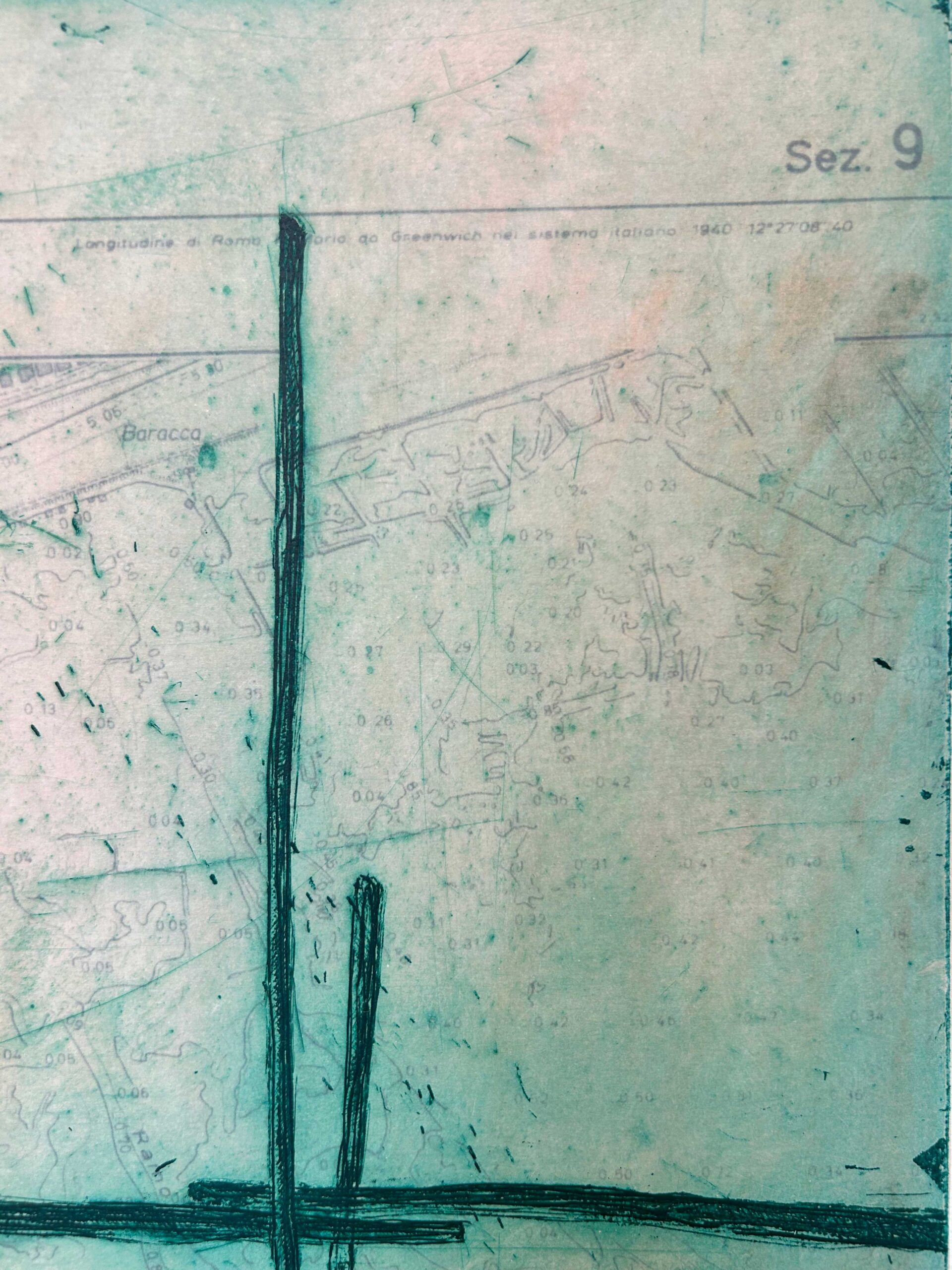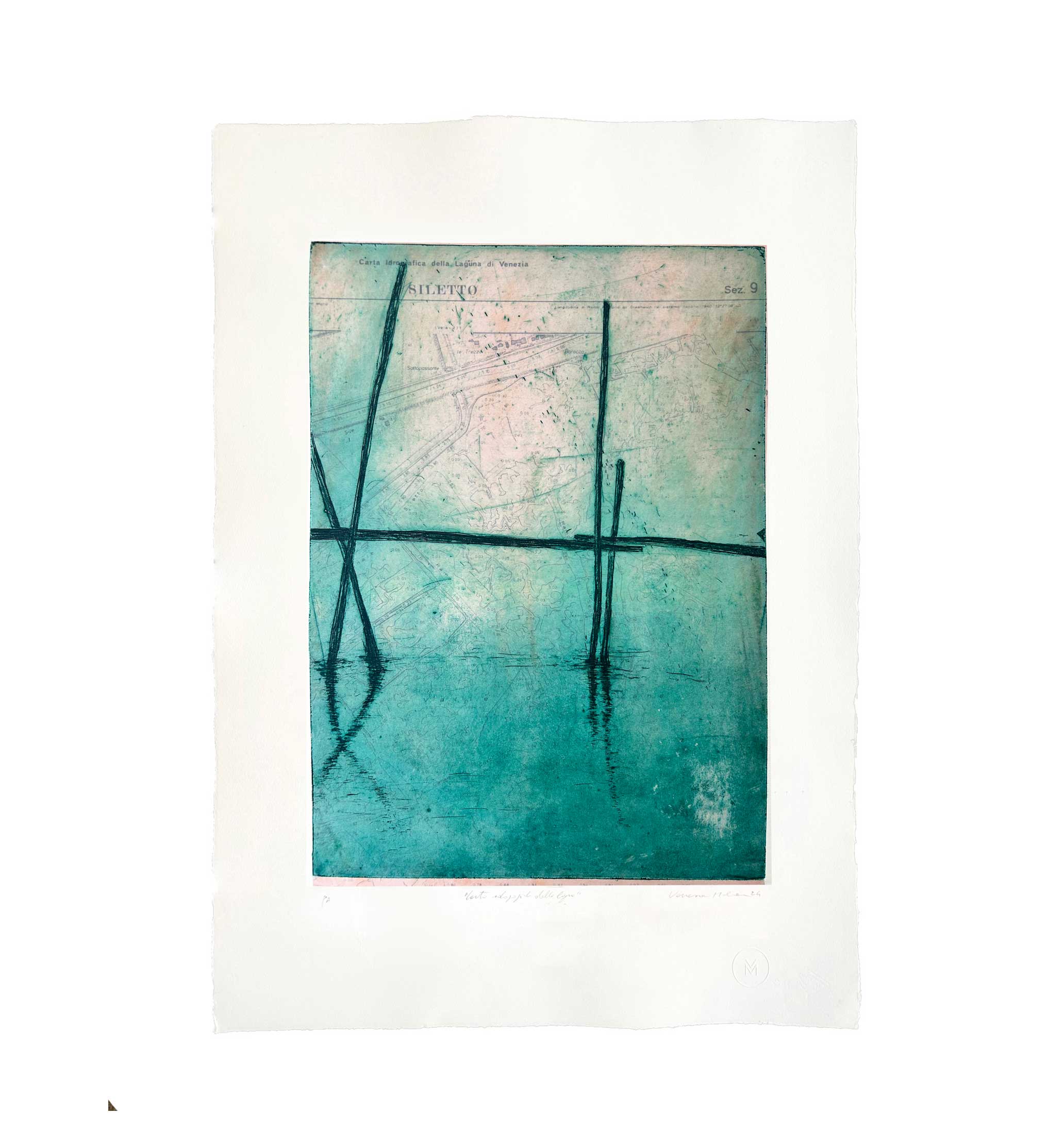 Tecnica: incisione calcografica su mappa idrografica della laguna, acquaforte.